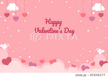 ハートの雲のイラスト、ピンク色のバレンタインフレーム