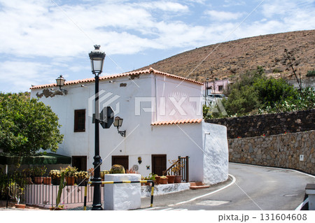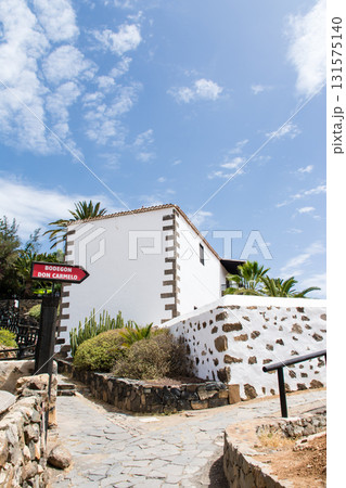 明るい日差しの下の白壁の建物 カナリア諸島のフエルテベンテュラ島の内陸のベタンクリアにて