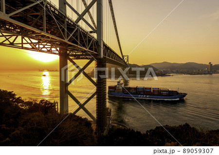 朝陽と関門大橋