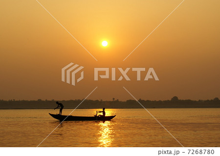 ガンジス河の夕焼け:インド・ヴァラナシ
