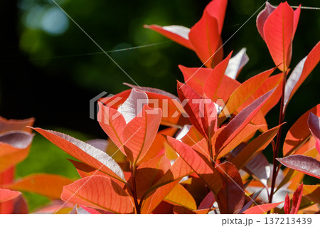 ベニカナメモチ 生垣の赤い葉の透過光 b-2 マット仕上げ