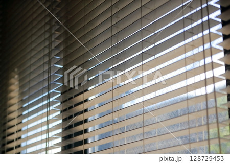 窓のルーバー(ベネシャンブラインド)と陽の光