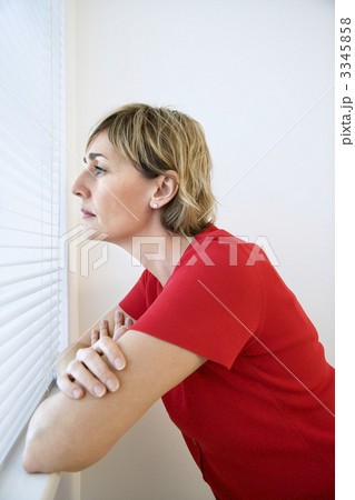 Woman looking out window.