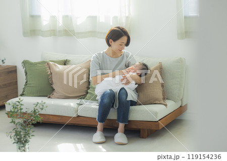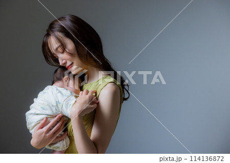 赤ちゃんを抱いている若い母親