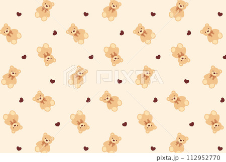 かわいいテディベアとハートのシームレスパターン