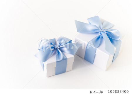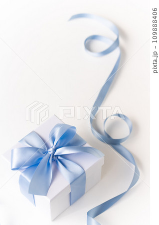 ピュアで爽やかで上品な色サックスブルーのリボンの贈り物
