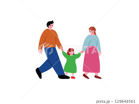 両親と手を繋いで歩く女の子