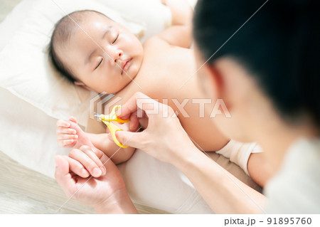 爪切り 育児 子育て (親子 母 娘 0歳 赤ちゃん 家族 乳児 ファミリー ライフスタイル)