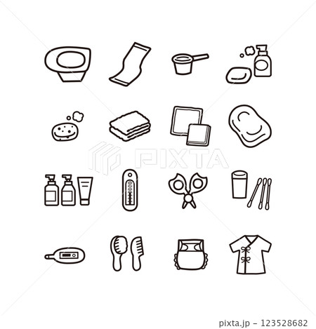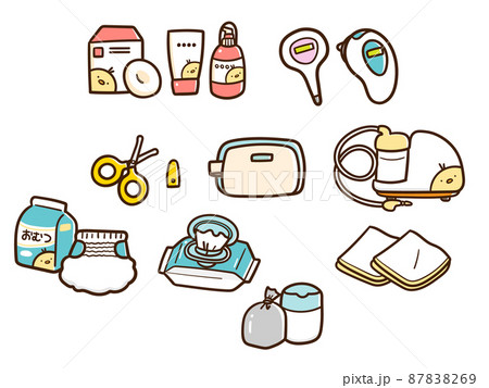 かわいい・ゆるいベビー用品の手書き風イラストセット
