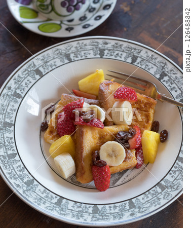 イチゴとパイナップルとバナナとレーズン、フレンチトースト