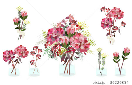 ピンクの花束・プロテア・紫陽花・ブーケ