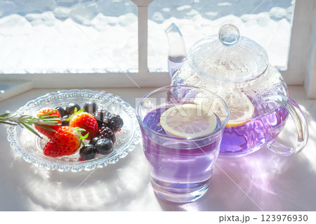 アントシアニンが豊富なバタフライピー茶とベリー類