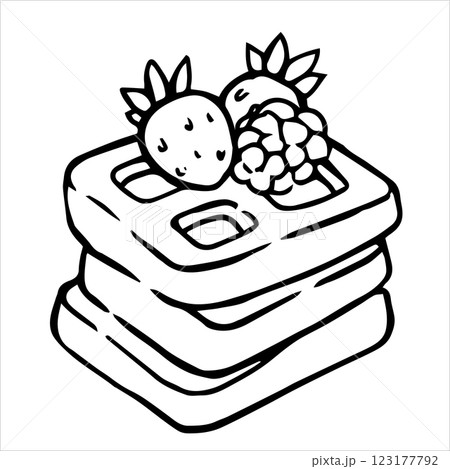 homemade breakfast with waffles. vector illustration in doodle style