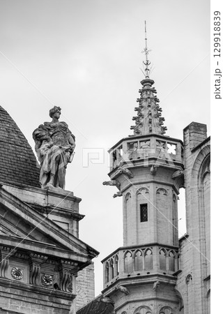 アントワープ市庁舎(世界遺産の鐘楼)とブラボーの噴水/アントワープ、ベルギー