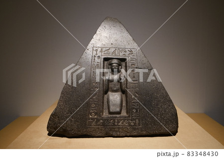 考古学発掘、写真 古代エジプトのピラミディオンの頂上に飾られた高級官僚の記念碑