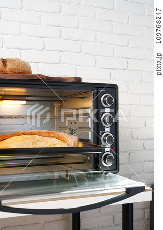 Shot of the freshly baked loaf of home made rye bread in the oven