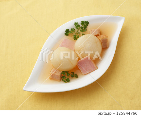 新玉ねぎの丸ごと煮込みスープを作る工程