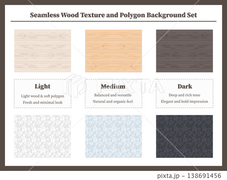 シームレスに繋がる!木目とポリゴンスタイルの汎用壁紙6種セット