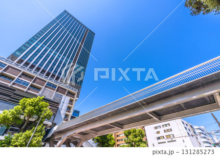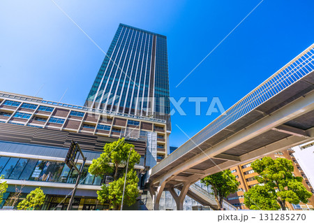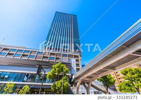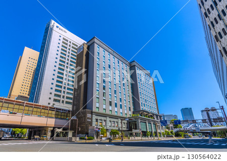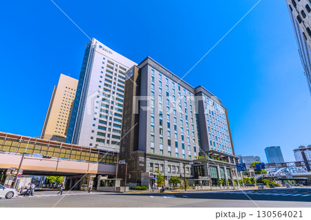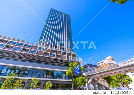 日本の東京都市景観 桜木町駅前のビル群や横浜市役所などを望む