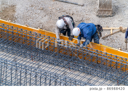 鉄筋工事 鉄筋型枠搬入 柱ベース筋組立 基礎工事