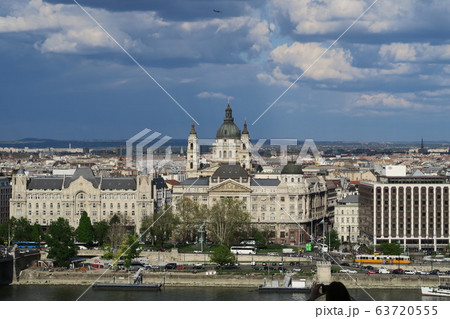 ハンガリー ブダペスト 世界遺産 ブダ地区の漁夫の砦からペスト地区に建つ聖イシュトヴァーン大聖堂を望