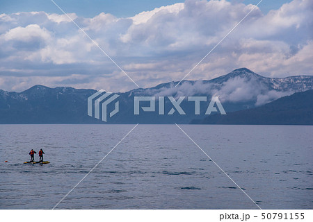 北海道 支笏湖 ペダルボート あめんぼうを楽しむ人