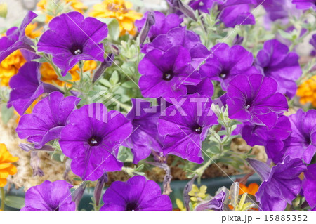 ペチュニア花 赤色紫色