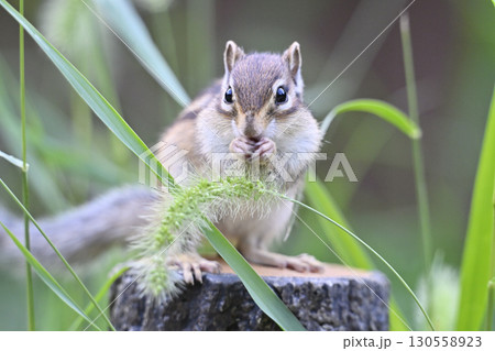 猫じゃらしを食べるシマリス