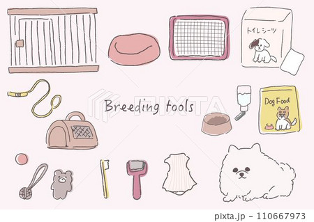 犬を飼うときの必須アイテム・お世話道具素材集 道具の名前入り 背景なし