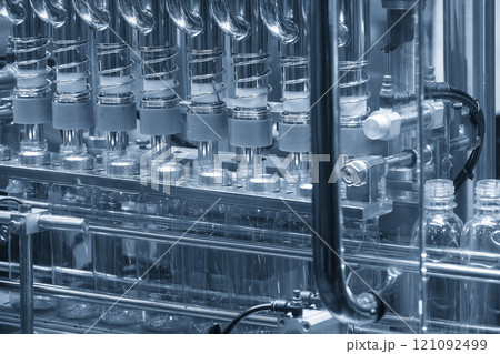 The hi-technology of drinking water manufacturing process in the light blue scene.