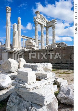 Remains of Temple of Trajan at Pergamon archaeological site in Turkey