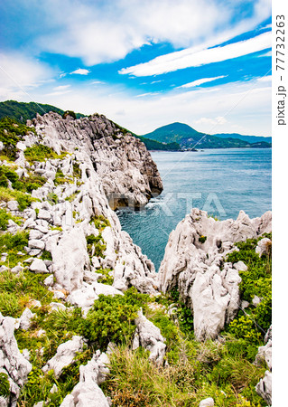 和歌山県日高郡由良町にある白い石灰岩の海岸と青い海が見れる日本のエーゲ海こと白崎海洋公園の風景