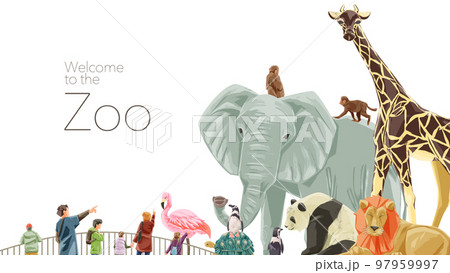 動物園の動物大集合手描き水彩風イラスト
