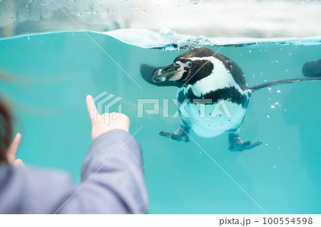 ペンギンを見る子供