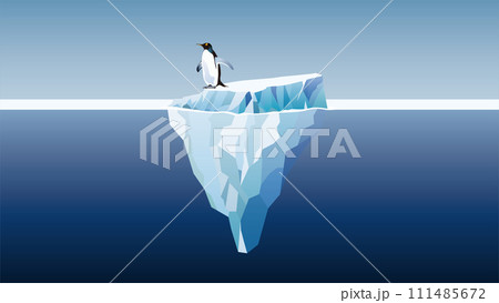 涼しい冷たい氷のイメージの快適な夏の背景フレーム素材_シロクマとペンギン