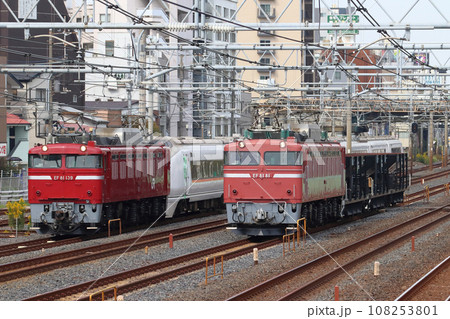 EF81形電気機関車牽引:配給列車同士で並走する東北線にて