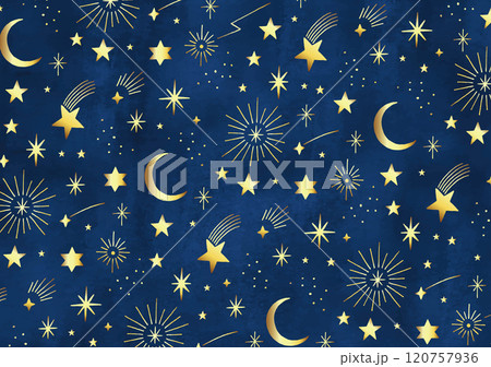 キラキラと夜空に無限に光る流星群と流れ星のイラスト