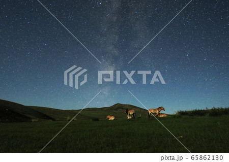 星空と野生馬タヒ