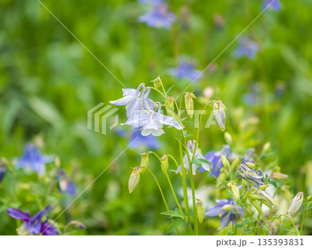 Blue and purple flower of European columbine, Aquilegia vulgaris