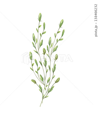 Watercolor green stem with small unopened buds bellflower bouquet illustration on isolated background. Hand painted campanula for spring greeting cards, botanical stationery, herbal cosmetics