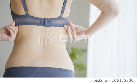 後ろ手にブラのホックを外す女性のイラスト 顔あり
