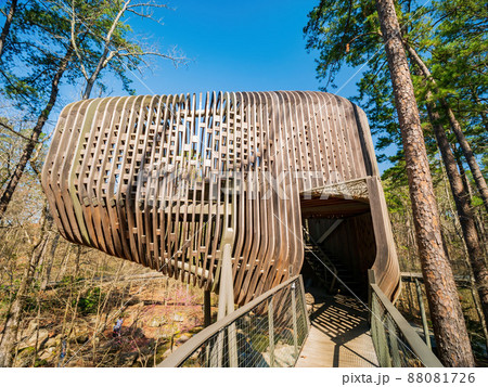 Sunny view of the Childrens Garden Treehouse in Garvan Woodland Gardens