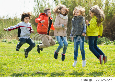 Happy kids having fun and jumping up