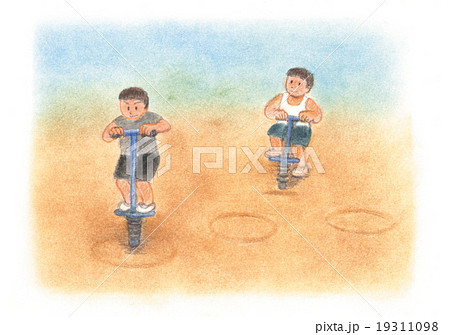 ホッピングで遊ぶ男の子