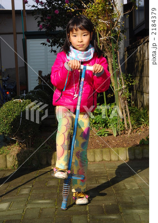 ホッピングで跳ねて遊ぶ女の子