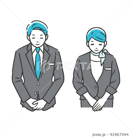 お辞儀・謝罪・不祥事の対応・挨拶・会釈するスーツ姿のの男女