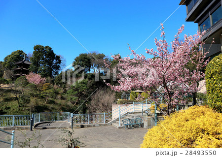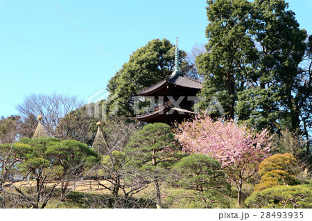 ホテル椿山荘東京の河津桜と三重塔(2月)東京都文京区