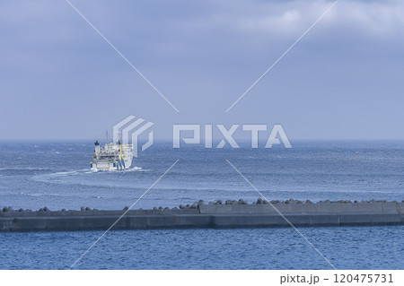 北海道礼文島 香深港を出港するフェリー / Rebun Island, Japan