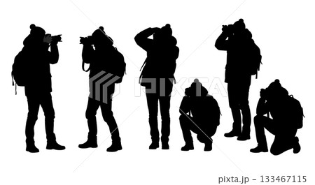 Black Solid Winter Photographer Silhouettes Set of Six on White Background