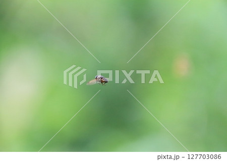 ホバーリングするツマグロキンバエの画像素材(写真・イラスト) 1ページ目